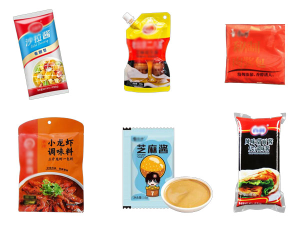 全自动酱类包装设备可用于各种流动性较差、高粘度、含有颗粒状和半流体食品的小袋商品定量包装工作,小立式酱类包装机可用于:辣椒酱、牛肉酱、甜面酱、豆瓣酱、海鲜酱、沙茶酱、芝麻酱、花生酱、鸡肉酱、拌饭酱、意面酱、豆豉酱、鱼子酱、沙拉酱、番茄酱、果酱等商品。